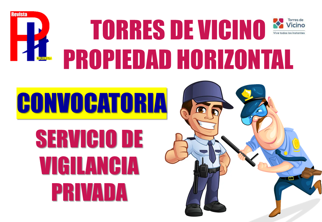 La copropiedad Torres de Vicino P.H., ubicada en la Cl 12 25a 12, invita a las empresas de vigilancia y seguridad privada debidamente autorizadas por la Superintendencia de Vigilancia y Seguridad Privada, a presentar propuestas para la prestación del servicio de seguridad en las zonas comunes del conjunto residencial.